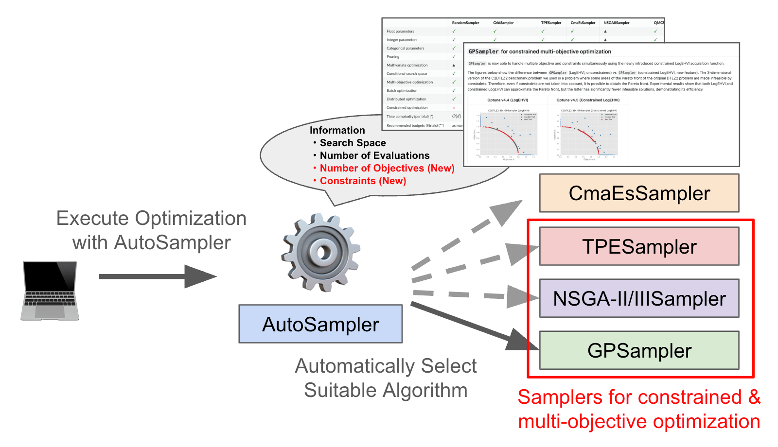 We have enhanced AutoSampler to fully support multi-objective and constrained optimization.