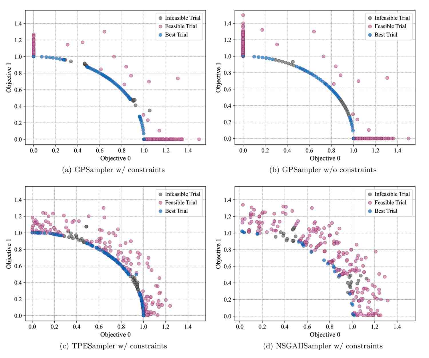 Optuna v4.5 extends Gaussian process-based sampler (GPSampler) to support constrained multi-objective optimization.